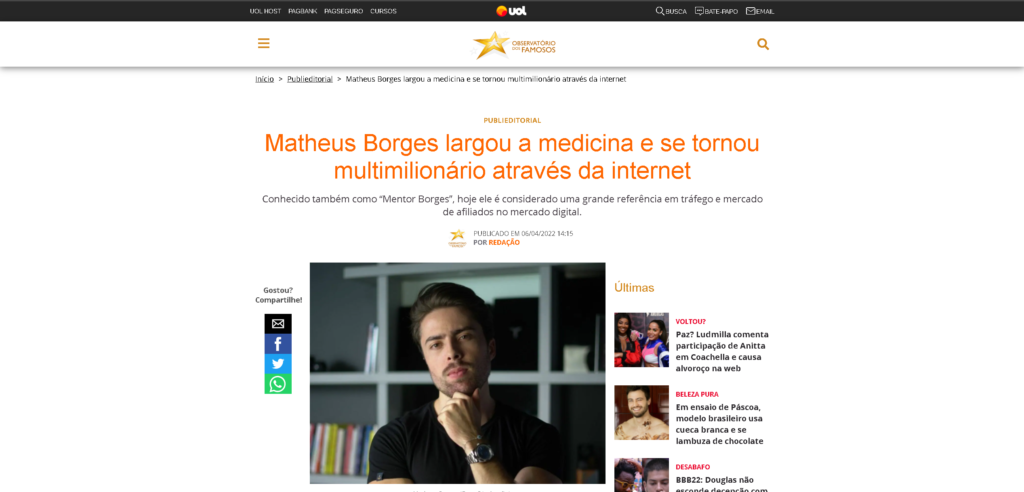 Me chamo Matheus (@oborgez) e tenho 22 anos… Se você assistiu ao vídeo, te provei que vim de família de baixa renda, porém desde cedo tive em mente que um dia gostaria de ter dinheiro e liberdade financeira para realizar meus sonhos. Desde então, já vendi doces na escola, fui entregador de marmita e já vendi cobre em ferro velho…